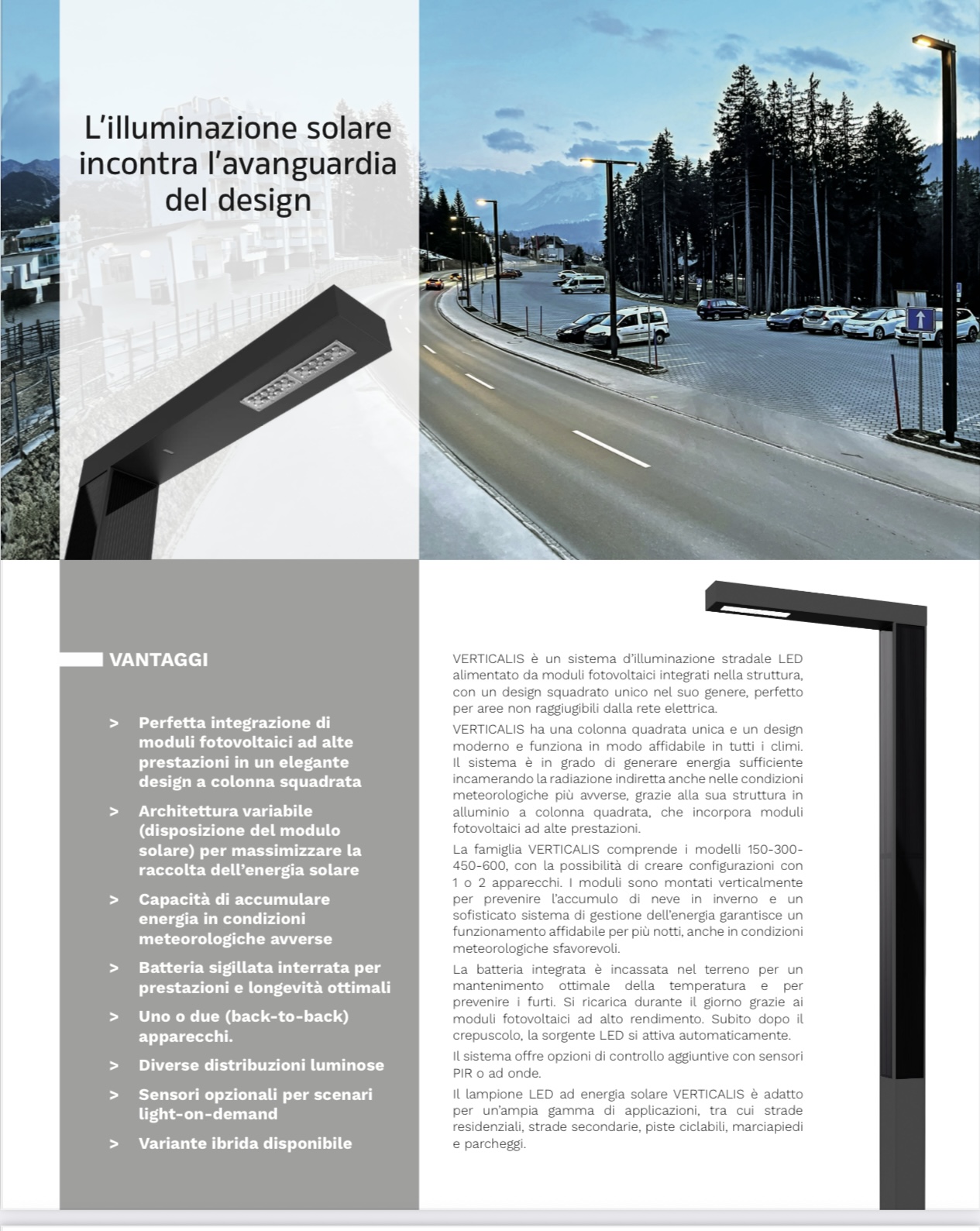 Queste tecnologie permettono di illuminare strade, piazze, parchi e piste ciclabili anche in aree non raggiunte dalla rete elettrica, garantendo autonomia e continuità.