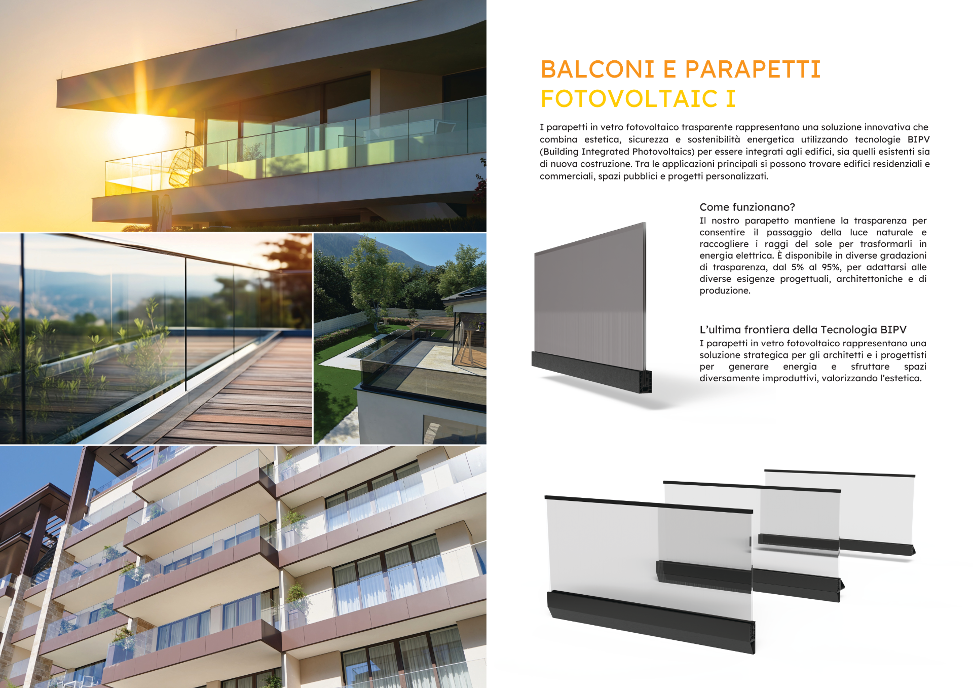Per noi, ogni metro quadro è un'opportunità. Non esistono spazi inutilizzati: piastrelle, vetri, parapetti e tegole diventano energia invisibile, pulita e intelligente, capace di integrarsi ovunque senza limiti.